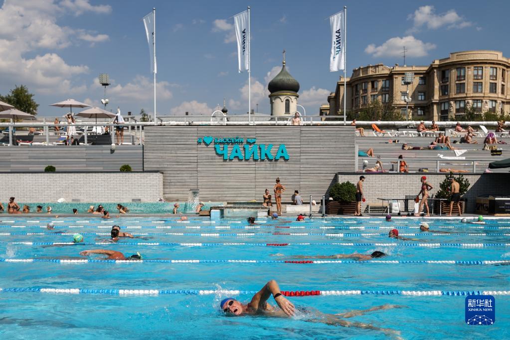 8月25日,人们在俄罗斯莫斯科的露天游泳池游泳。