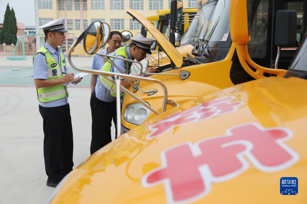 新学期开学在即,安徽省淮北市开展校车安全专项大检查,组织交警和相关技术人员对辖区校车信息资料、校车司机驾驶资格、校车安全性能、防疫措施和随车配备的安全应急器材设备等逐一检查,消除校车安全隐患,确保学生乘车安全。