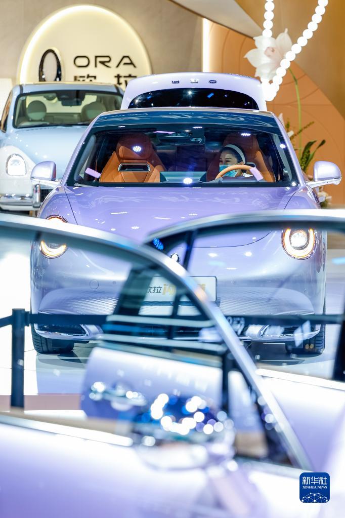 8月26日,在第二十五届成都国际汽车展览会的长城欧拉汽车展台,参观者在体验新能源汽车“欧拉闪电猫”。