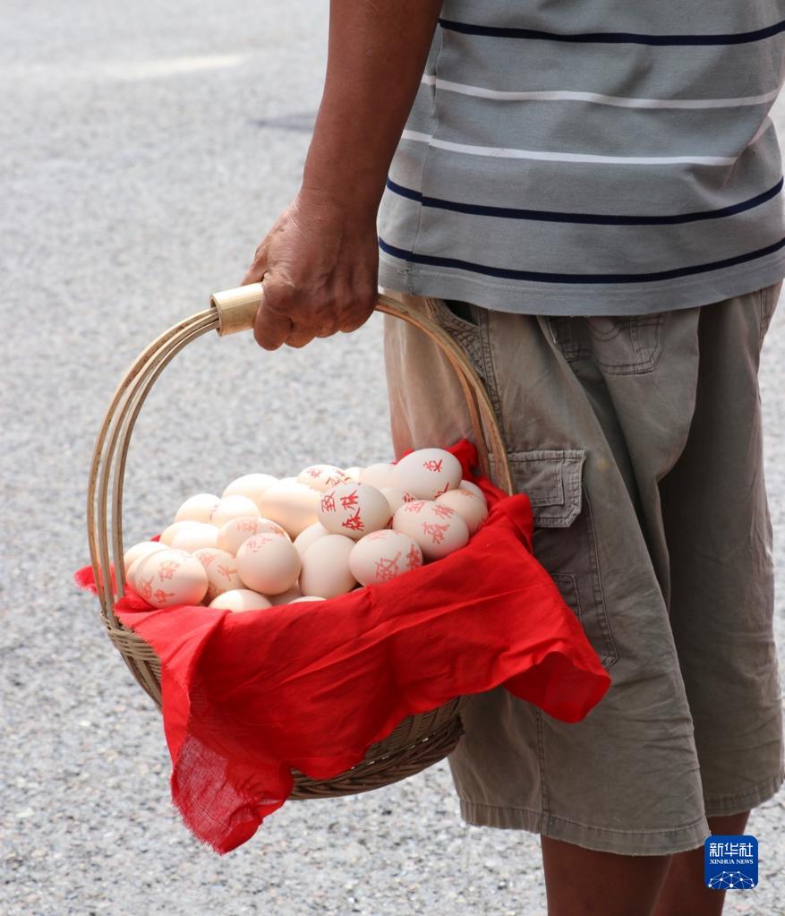8月27日,在重庆市璧山区,村民提着一篮煮鸡蛋等候即将离开的森林消防队员。