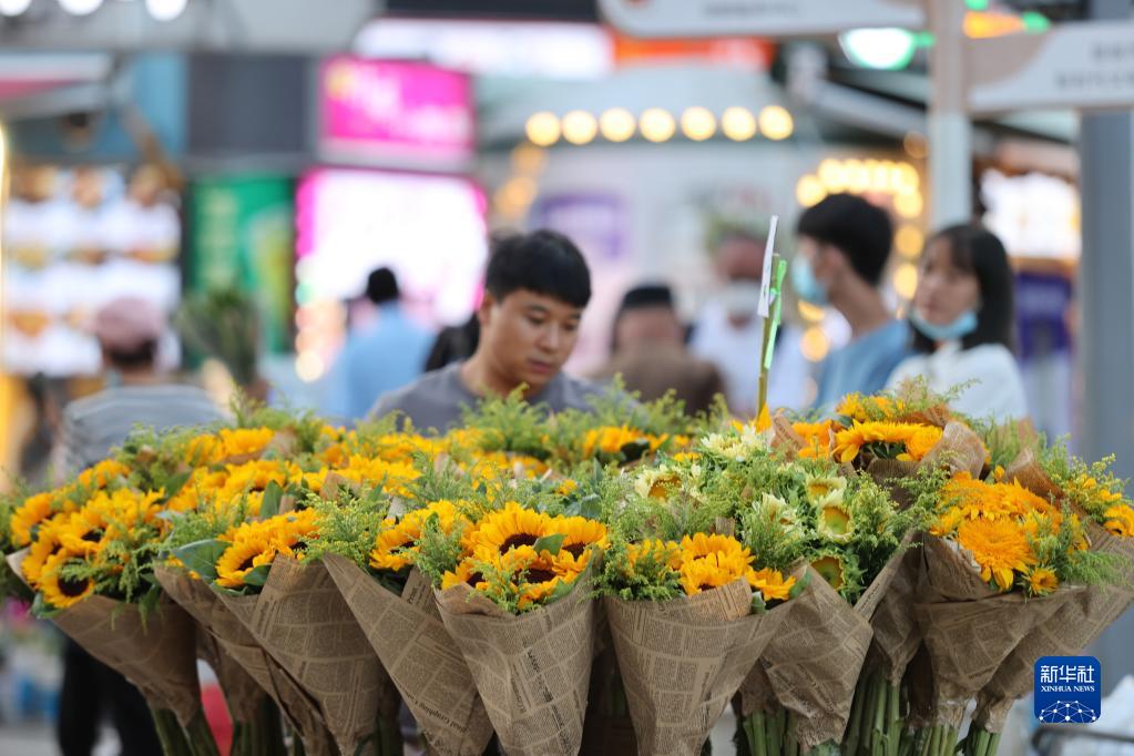 8月27日夜,游客在昆明斗南花卉交易市场选购鲜花。