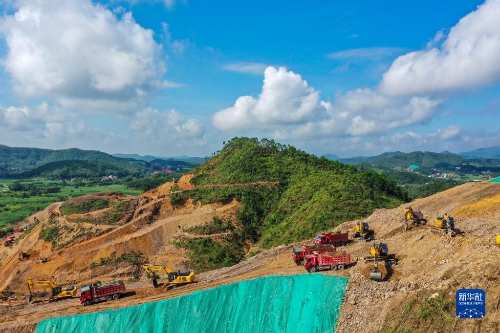 这是8月28日在广西灵山县拍摄的平陆运河马道枢纽建设现场(无人机照片)。
