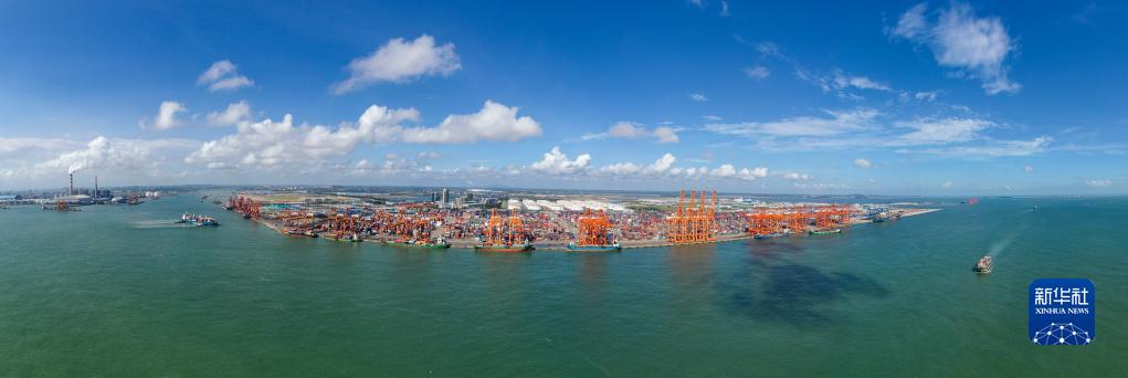这是8月27日拍摄的平陆运河钦州湾大榄坪段(无人机全景照片)。