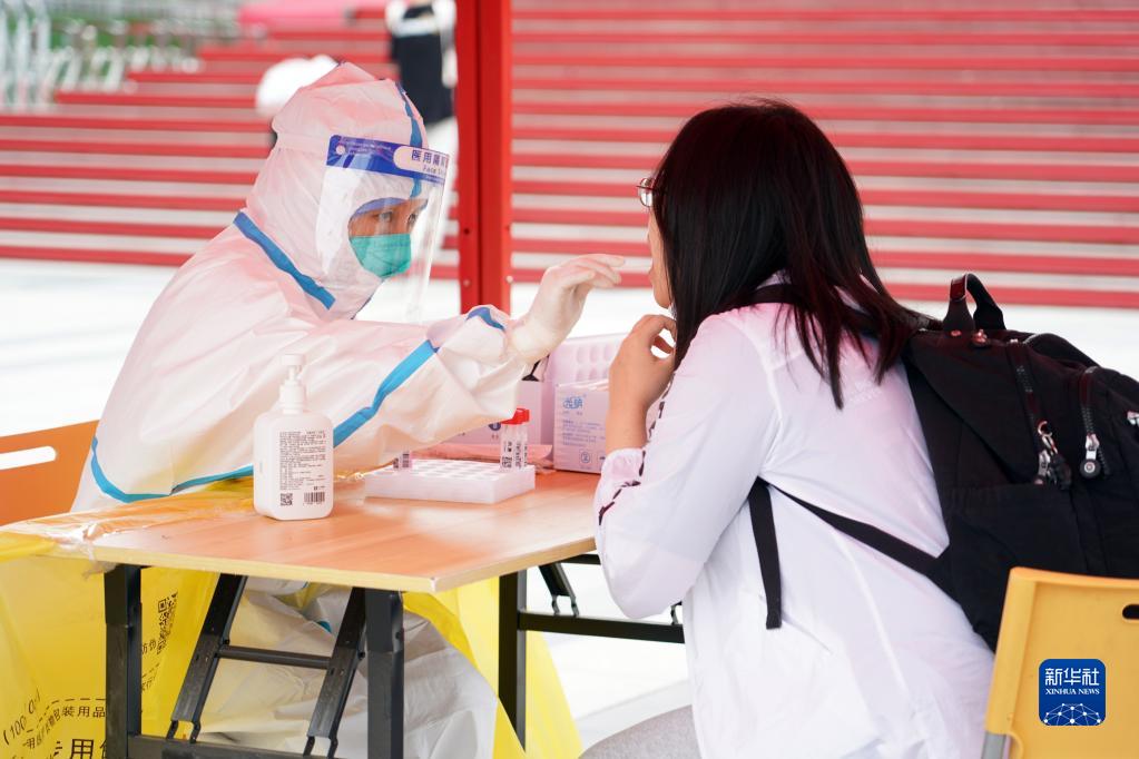 8月28日,医护人员为北京大学2022级本科新生进行核酸采样。