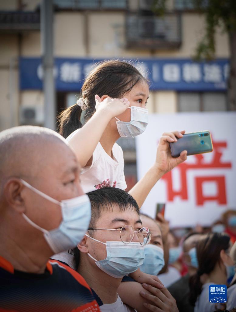 8月28日,在重庆市北碚区,一名前来送别的小女孩向撤离的消防车队敬礼。