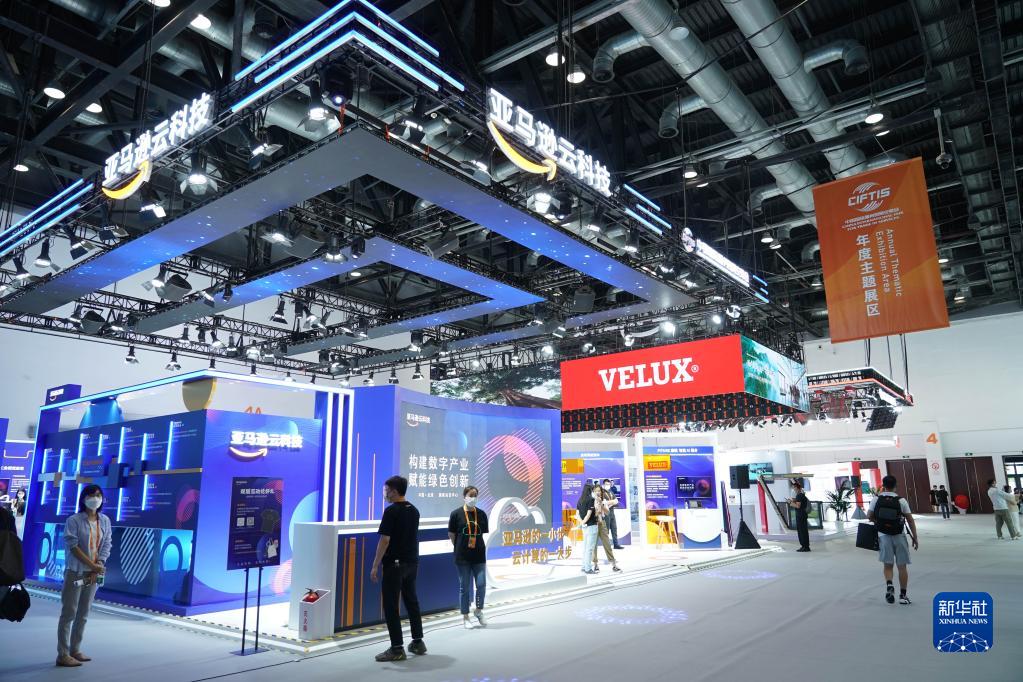 8月28日在国家会议中心一期拍摄的2022年服贸会年度主题展区。