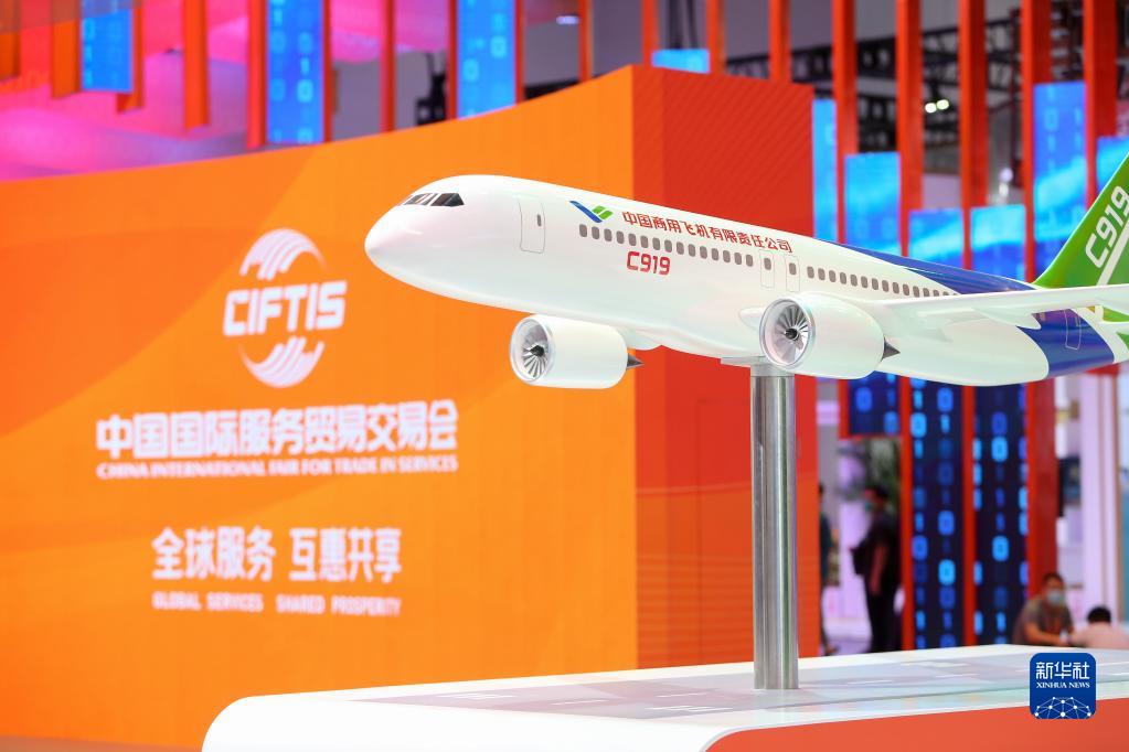 8月28日在国家会议中心拍摄的C919飞机模型。