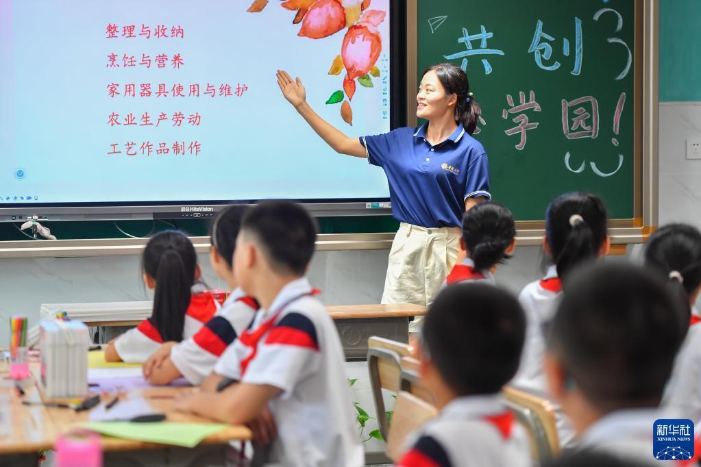 8月29日,在长沙市天心区青园南湖小学,老师向学生介绍劳动课程的内容。