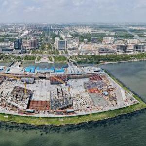 8月29日,空中俯瞰临港西岛金融中心项目工地(无人机照片)。