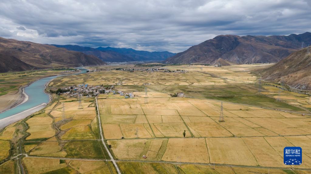 西藏拉萨市墨竹工卡县唐加乡的青稞田(8月27日摄)。