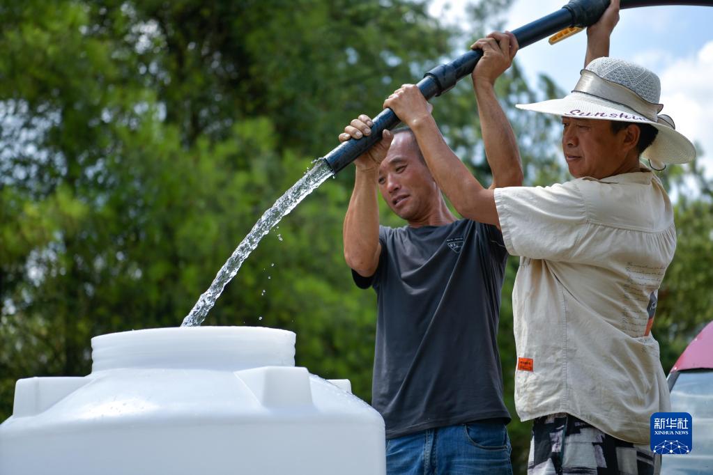 8月25日,在遵义市务川县分水镇天山村,当地政府组织村民在抗旱救灾临时集中取水点取水。