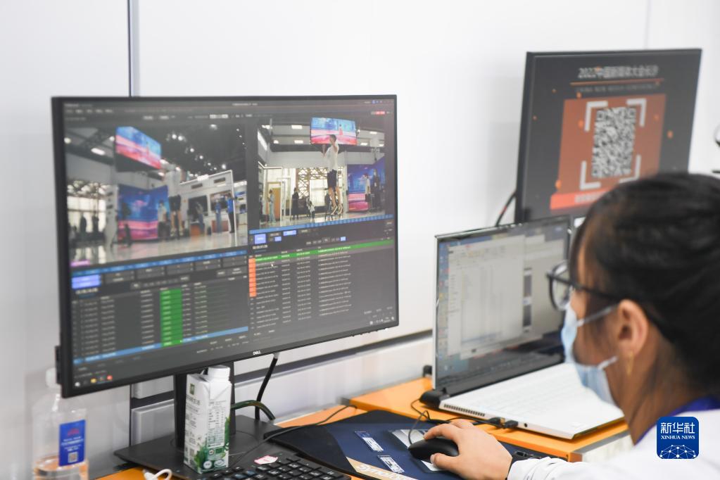 8月30日,工作人员在“新技术 融创新高地”2022中国新媒体技术展上展示广播级超高清时空凝结自由视角互动系统。