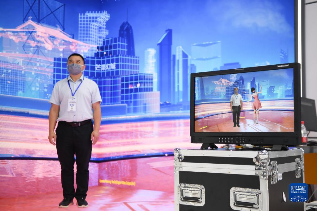 8月30日,参观者在“新技术 融创新高地”2022中国新媒体技术展上体验沉浸式XR虚拟录制系统。