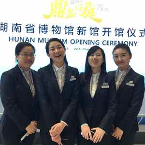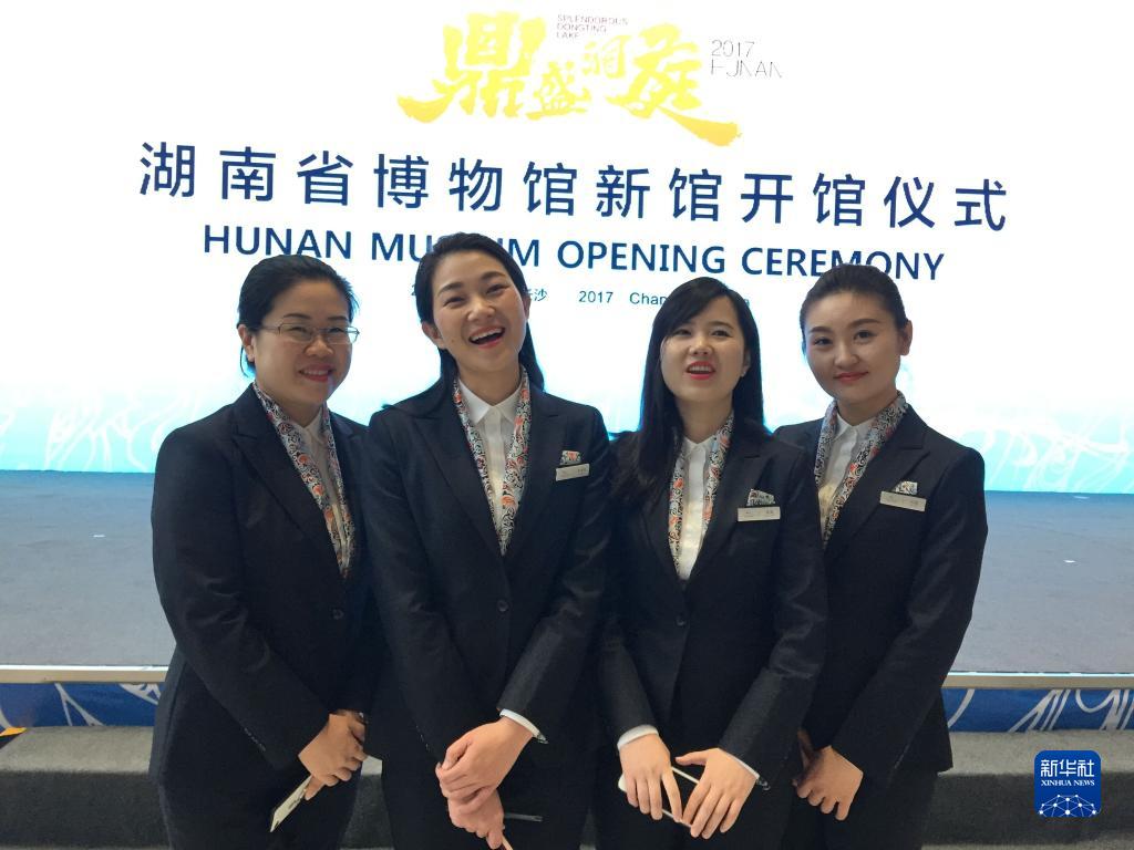 2017年11月,李丽辉(左二)和同事在湖南省博物馆新馆开馆仪式上(资料照片)。
