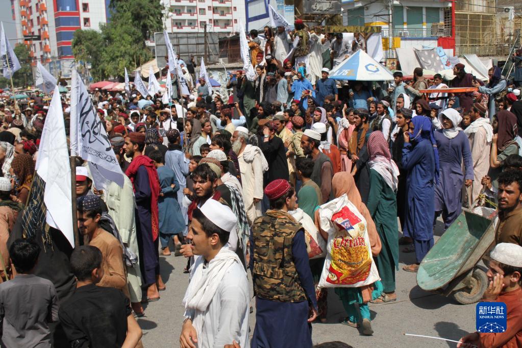 8月31日,时值美军撤离阿富汗一周年之际,人们走上阿富汗楠格哈尔省首府贾拉拉巴德街头。
