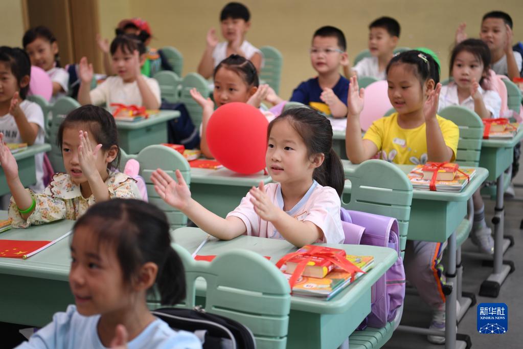 9月1日,河北雄安新区容东片区容和悦容小学一年级新生在上开学第一课。容东片区是雄安新区实施回迁安置的首个新建回迁片区。
