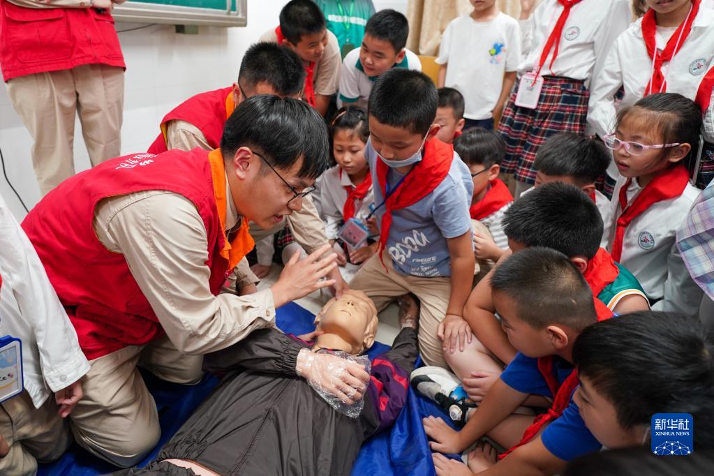 9月1日,江苏省扬州市宝应县供电公司的志愿者为宝应县安宜实验学校的学生讲解触电急救知识。