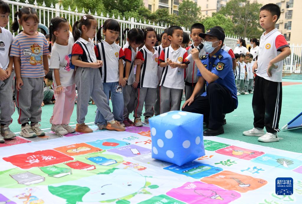 9月1日,安徽省合肥市包河区常青街道淝南社区淝南家园幼儿园小朋友在开学第一课上参与垃圾分类环保小游戏。