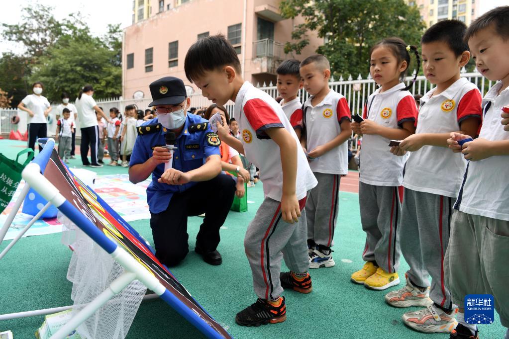 9月1日,安徽省合肥市包河区常青街道淝南社区淝南家园幼儿园小朋友在开学第一课上参与垃圾分类环保小游戏。