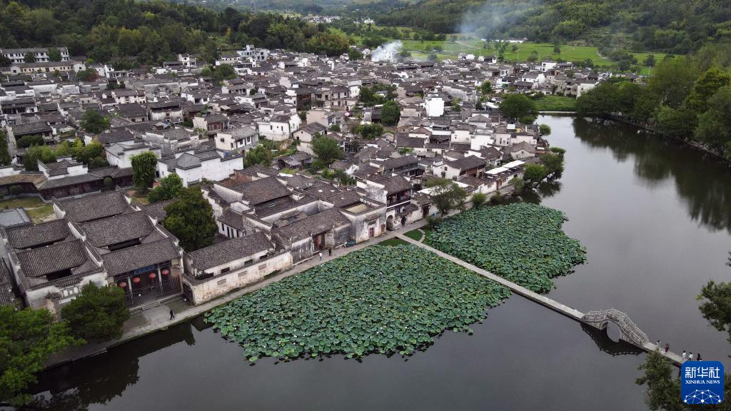 清晨的安徽黄山市黟县宏村(9月1日摄,无人机照片)。