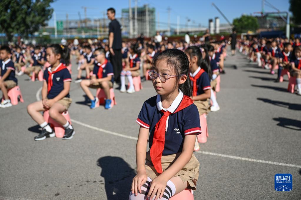 9月1日,在北京市中关村外国语学校小学部,同学们参加开学典礼。