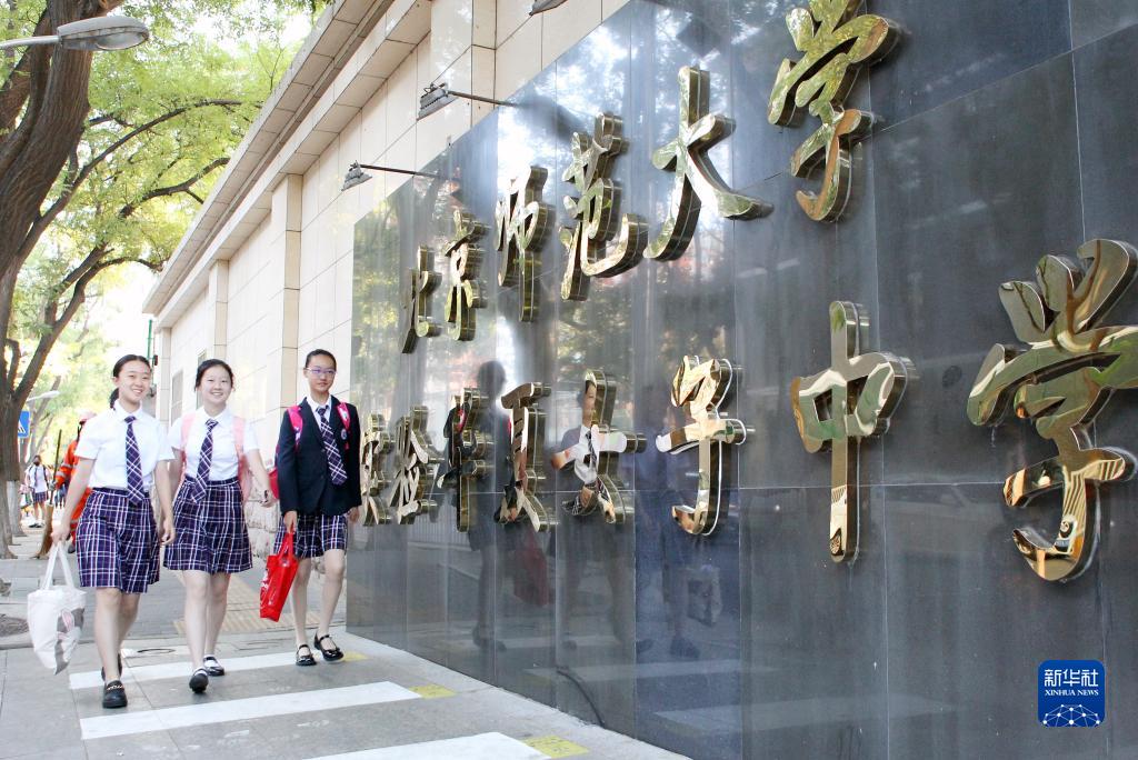 9月1日,北京师范大学实验华夏女子中学的几名学生走向校门。