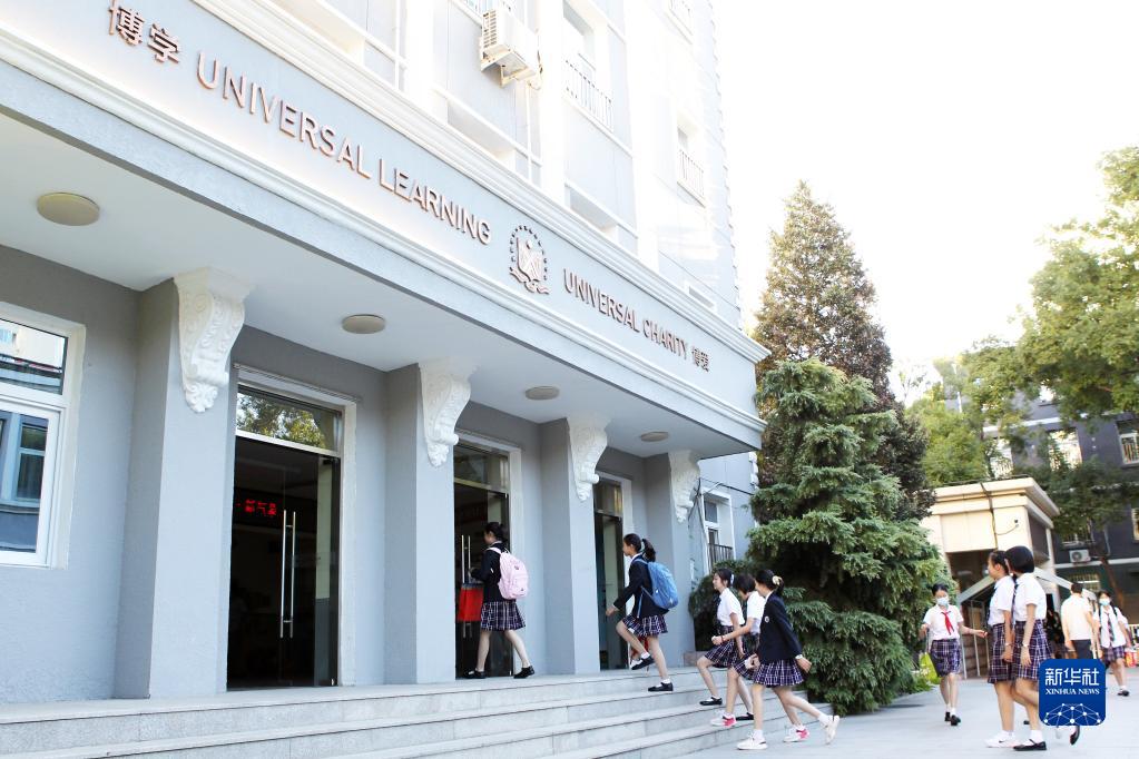 9月1日,北京师范大学实验华夏女子中学的学生走进教学楼。