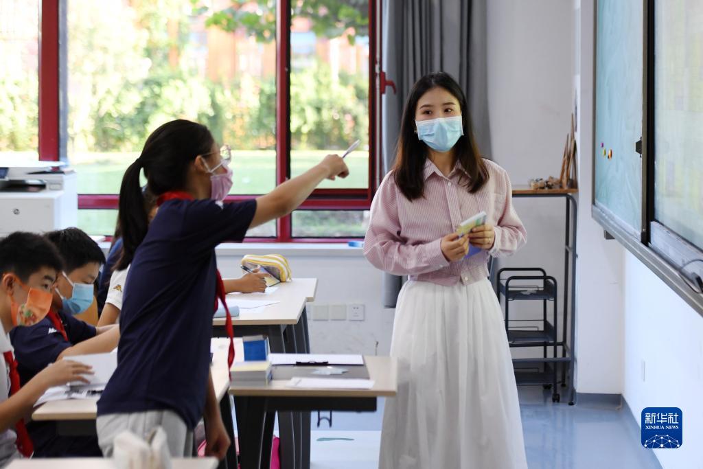 9月1日,在北京十一晋元中学,老师在回答入学新生提出的问题。