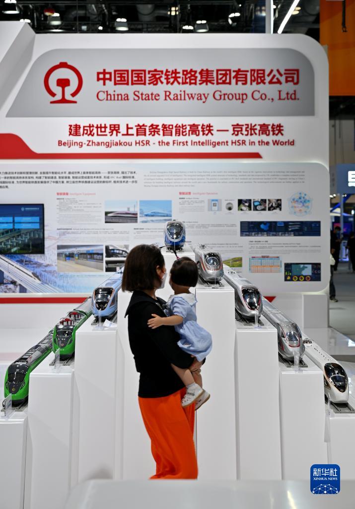 9月1日,观众在国家会议中心内的国铁集团展台观看智能动车组模型。