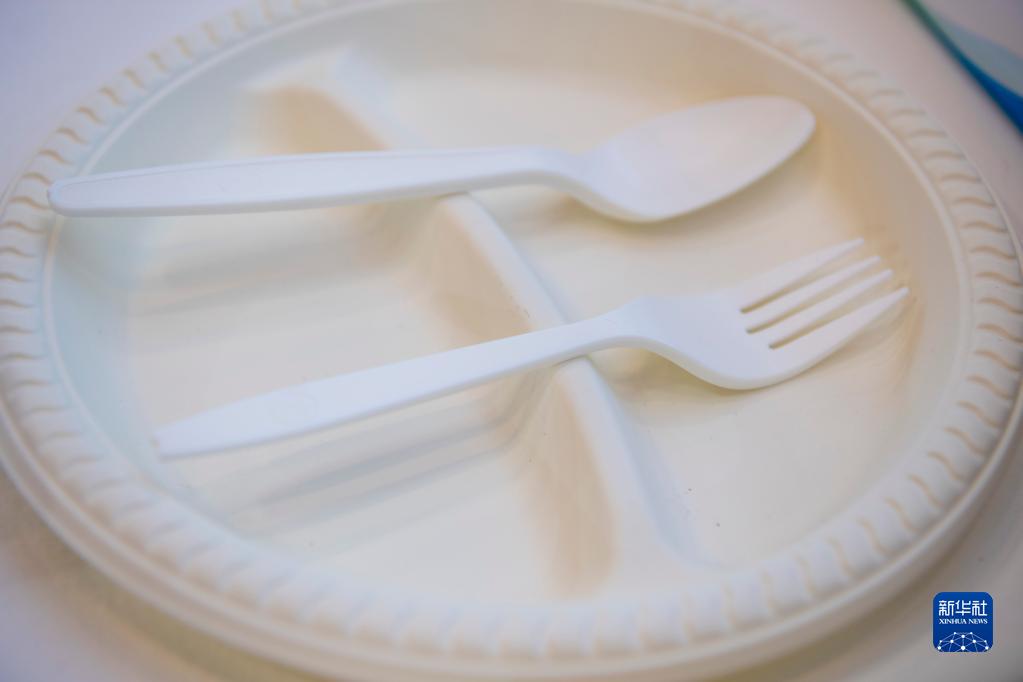 这是9月1日在博览会现场拍摄的全生物降解一次性餐具。
