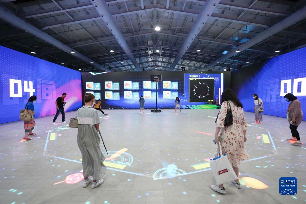 9月1日,在服贸会首钢园区,参观者在元宇宙体验展馆内体验一款互动游戏。新华社记者 鞠焕宗 摄