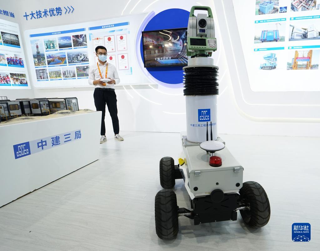 9月1日,在2022年服贸会首钢园区,工作人员展示道路工程移动式高精度测量机器人。新华社记者 金皓原 摄