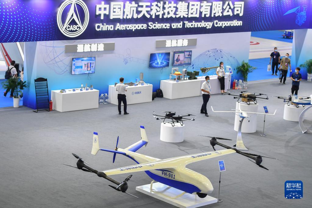 9月1日,在湖南长沙国际会展中心,参观者在中国航天科技集团有限公司展位参观。