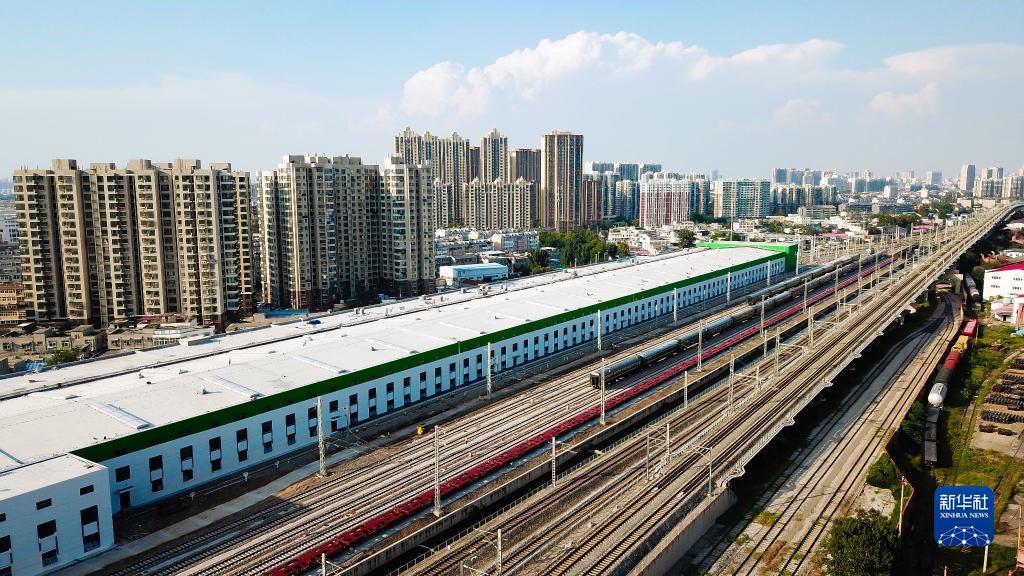 9月1日拍摄的济(南)郑(州)高铁济南站动客车整备所(无人机照片)。新华社记者 郭绪雷 摄