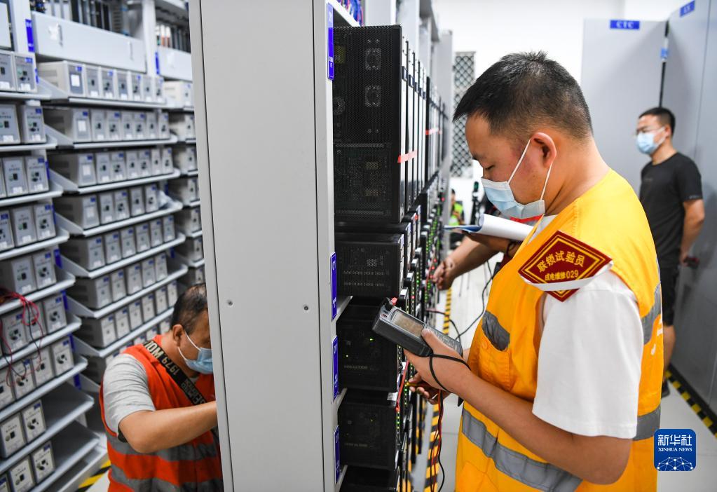 9月1日凌晨,施工人员在重庆铁路枢纽东环线磨心坡站信号机械室内作业。新华社记者 王全超 摄