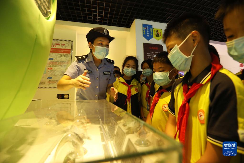 9月1日,在贵州省赤水市天台学校,民警给学生讲解新型毒品相关知识。