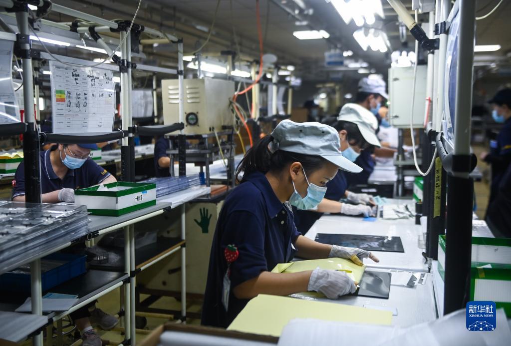 9月2日,杭州综合保税区一家外贸企业的工人在流水线上生产。