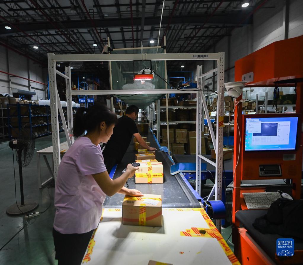 9月2日,在杭州综合保税区一家跨境保税仓内,工作人员扫码打包跨境电商保税进口商品。“数字综保”综合服务平台提升了跨境保税仓货物的流转效率,为企业节省时间和费用。