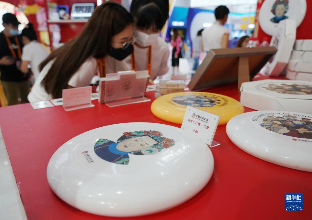 这是9月2日在服贸会文旅服务专题展区拍摄的以《同光十三绝》为设计灵感的文创飞盘。新华社记者 张晨霖 摄