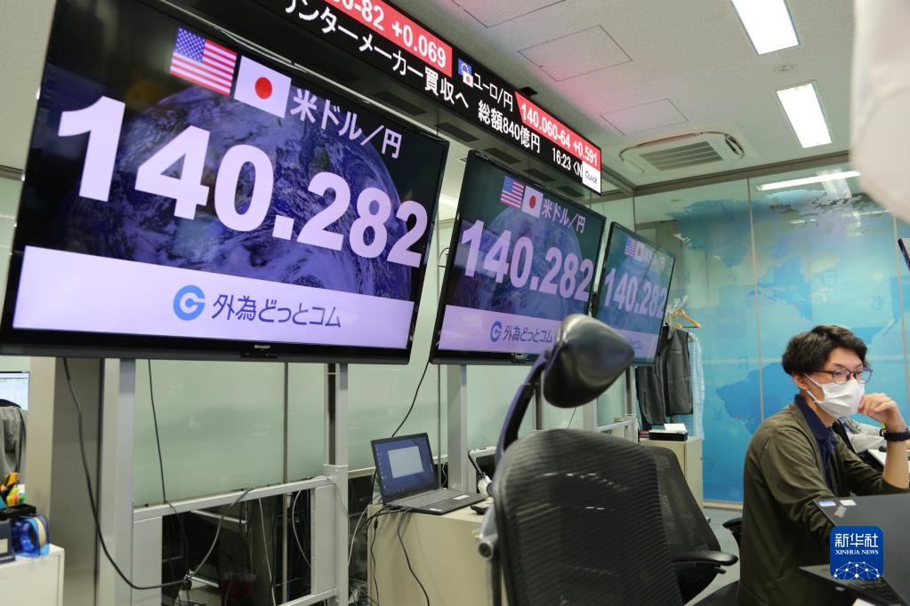 这是9月2日在日本东京拍摄的显示日元对美元汇率信息的电子显示屏。日元对美元汇率9月2日一度跌破140日元兑1美元,创24年来新低。新华社发(龚岫熙摄)