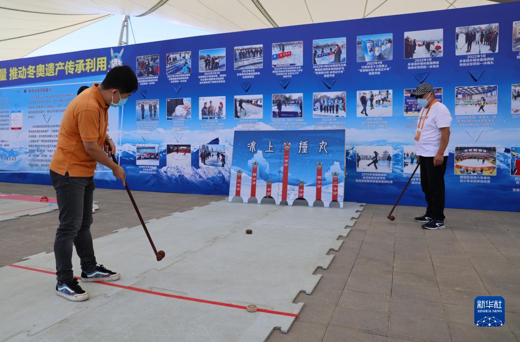 9月1日,一名男子在服贸会体育服务专题展区体验冰上捶丸。新华社记者 戚晓毅 摄