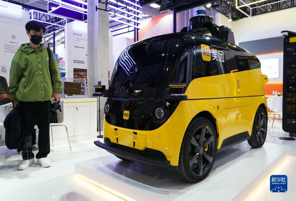 9月2日在供应链及商务服务专题展区拍摄的自动配送车。