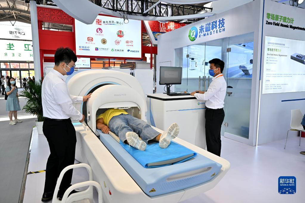 9月2日,观众在健康卫生服务专题展区体验展出设备。