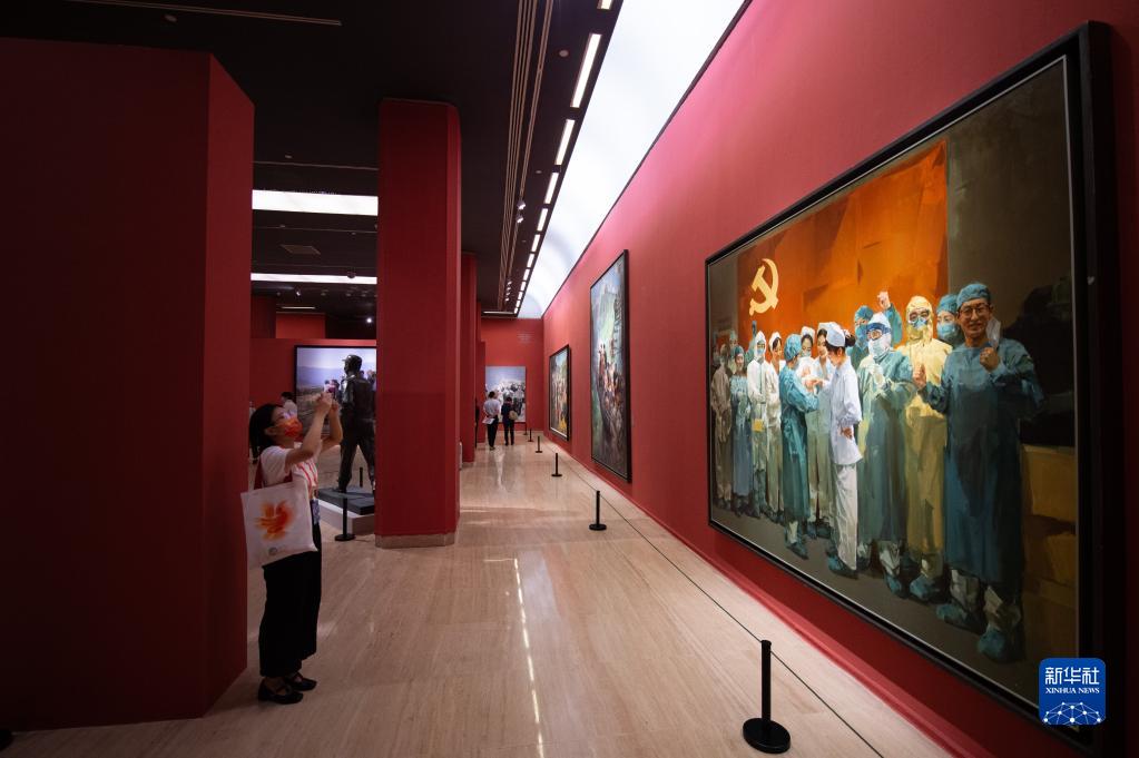 9月2日,观众在观看展览中的作品《新生——浙里抗疫》。