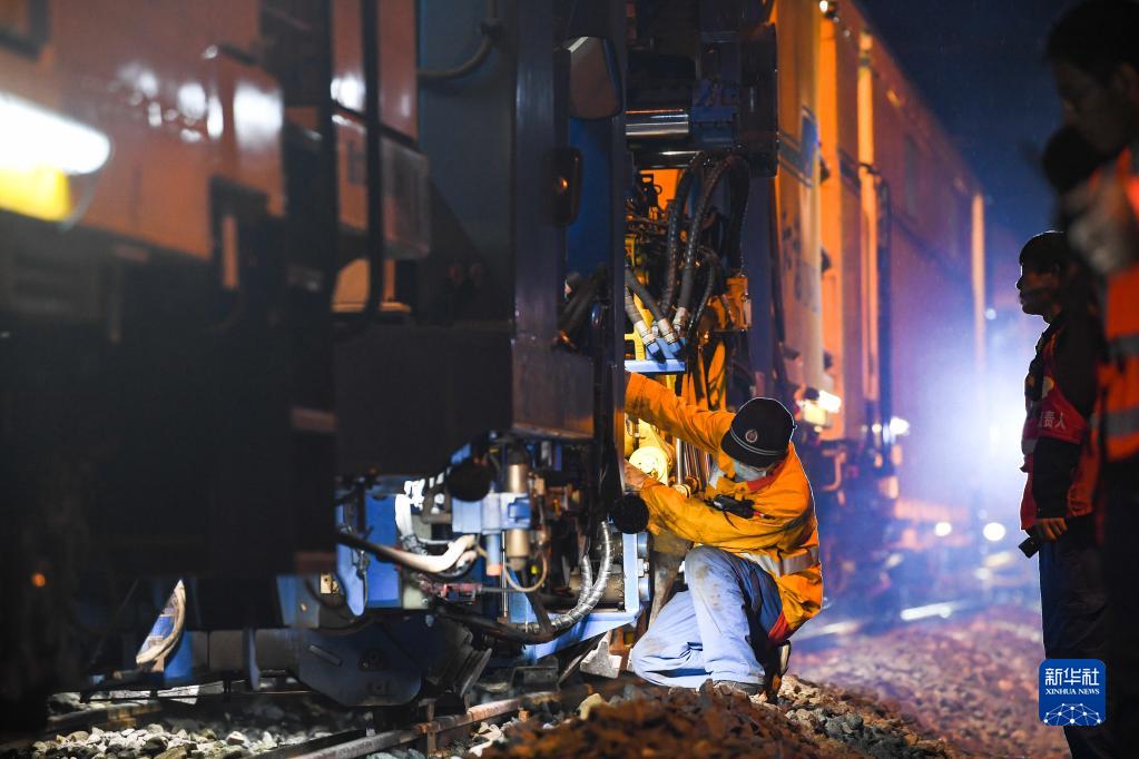 9月3日凌晨,工人在渝利铁路沙子站增设客运设施项目作业。