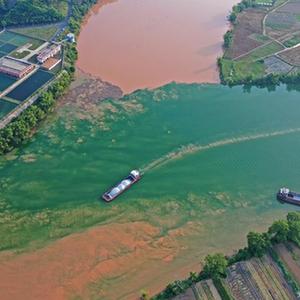 三江口地处广西南宁市江南区江西镇,左江与右江在这里汇合后成为邕江。受近日上游降雨影响,左江江水浑浊发黄,浑黄的左江水与清澈的右江水在三江口水域交汇。