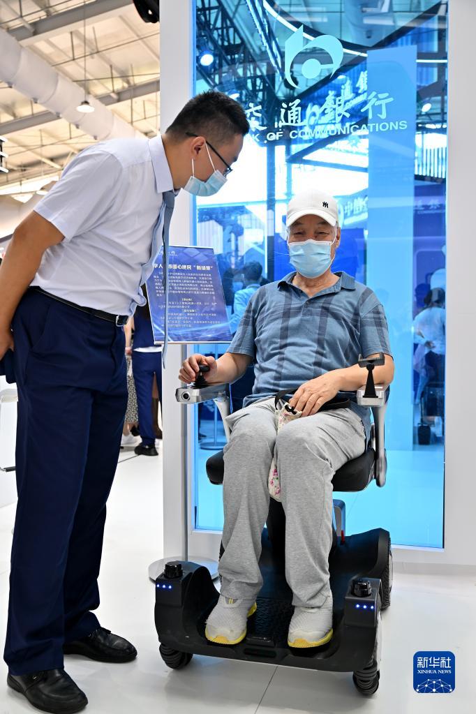 9月4日,在服贸会首钢园区金融服务专题展上,一名观众在交通银行展台体验基于数字人民币支付、为老年群体等特殊人群研发的辅行设备。 新华社记者 李鑫 摄