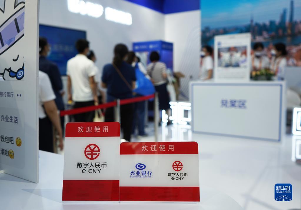 9月4日,在服贸会首钢园区金融服务专题展上,参观者排队体验兴业银行数字人民币应用场景。 新华社记者 金皓原 摄