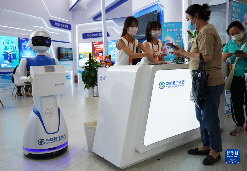 9月4日,在服贸会首钢园区金融服务专题展上,参观者在中国民生银行展台咨询金融业务。 新华社记者 金皓原 摄