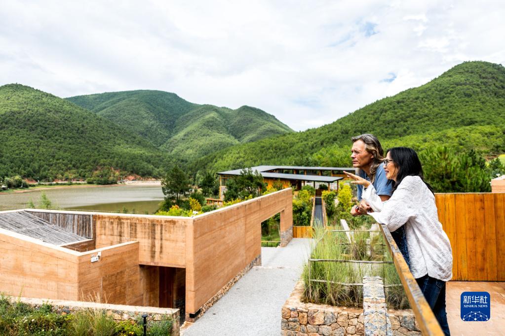 8月31日,林登和妻子瑾妮在喜林苑沙溪店讨论工作。